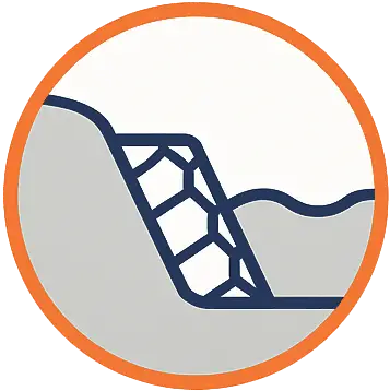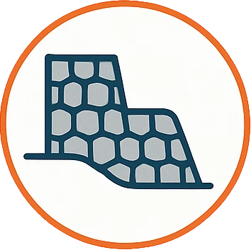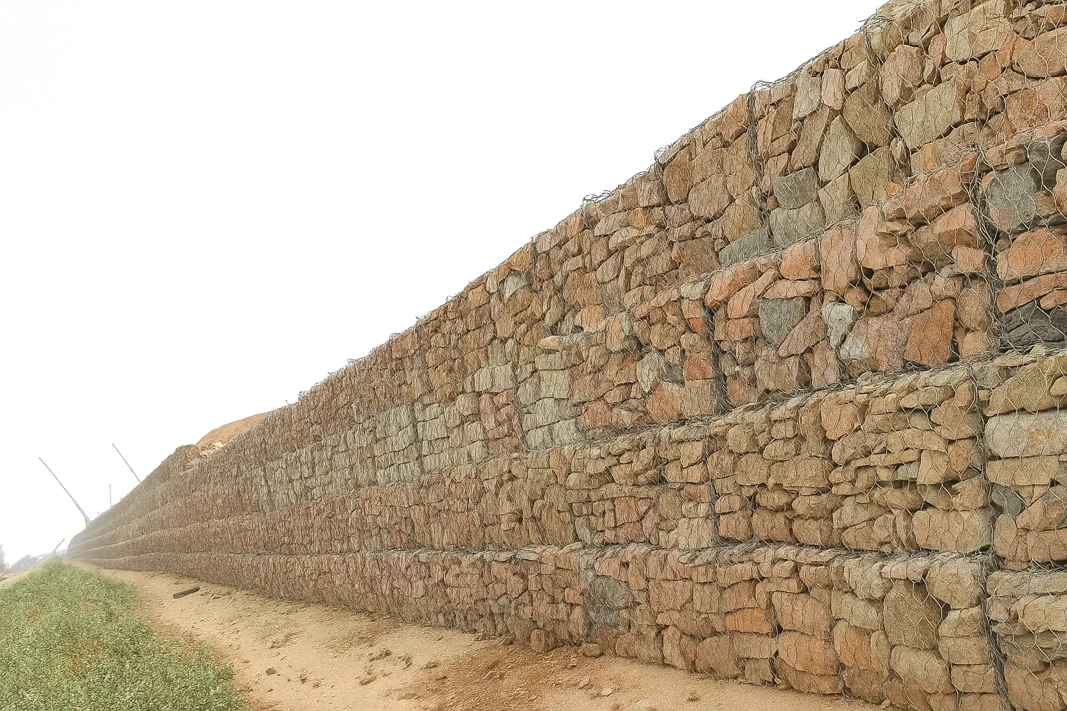 ATGABIONS are boxes made of double twisted hexagonal woven steel wire mesh. They are heavily galvanized and coated with PVC to ensure durability in harsh environments. These boxes are delivered flat packed and assembled using selvedge and lacing wires. Once placed at the site, the ATGABIONS are filled with stones, creating flexible, permeable, and solid structures that are used for retaining earth and controlling erosion. If the stability of the structure relies on its own weight, it is called a gabion gravity wall (GGW).